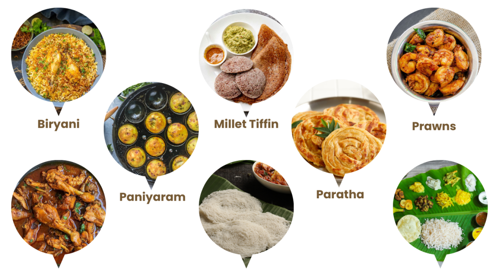 That question sparked our journey. Most people think South Indian food means idli, dosa, and only vegetarian food. But in truth, Tamil Nadu -especially Chettinad has some of India’s most flavourful non-veg dishes: Chicken Chettinad, Nandu Curry, Meen Kuzhambu, and more.